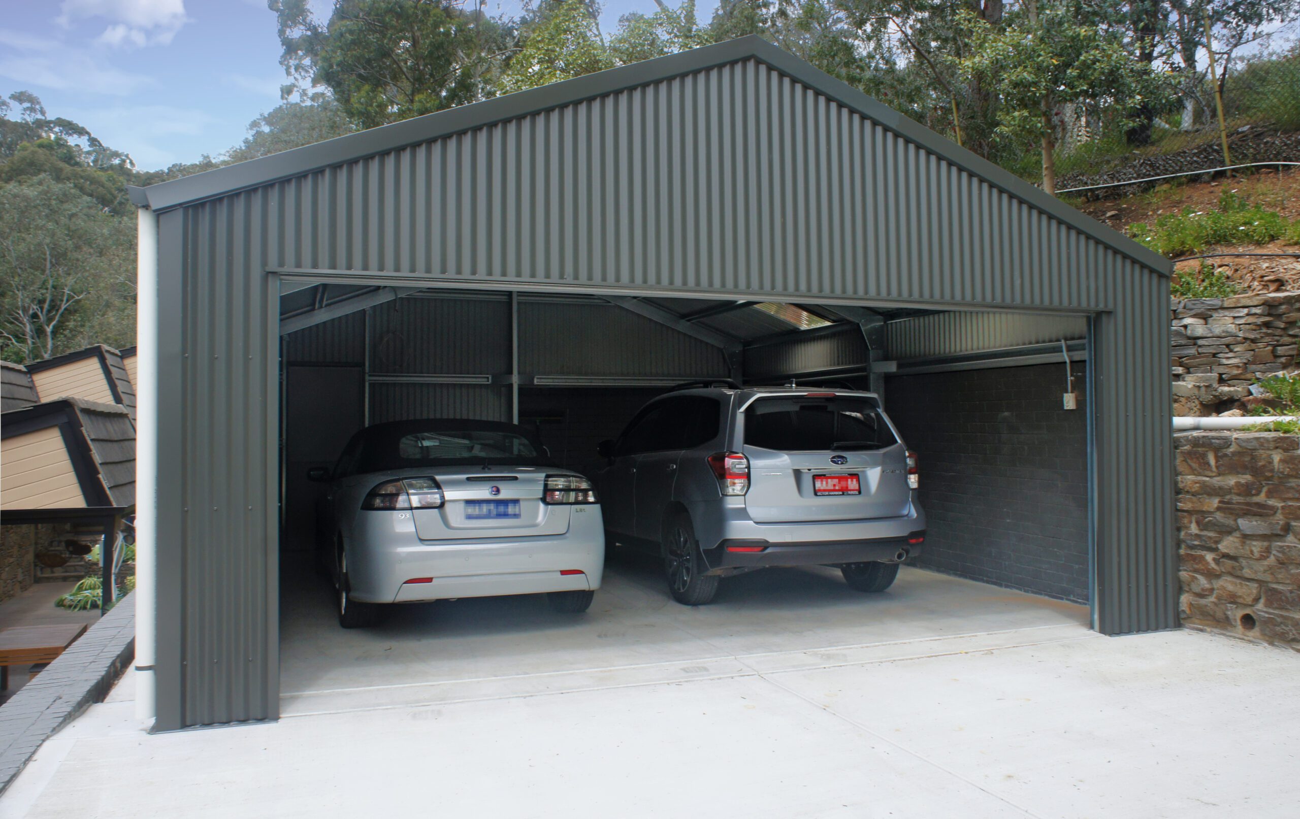 Your car protection solution can be an extension of your home. We can create single, double or triple garages in a variety of widths, with front and/or side entry, windows and roller doors. If it’s going to sit beside your home we can take into account surrounding buildings during design.