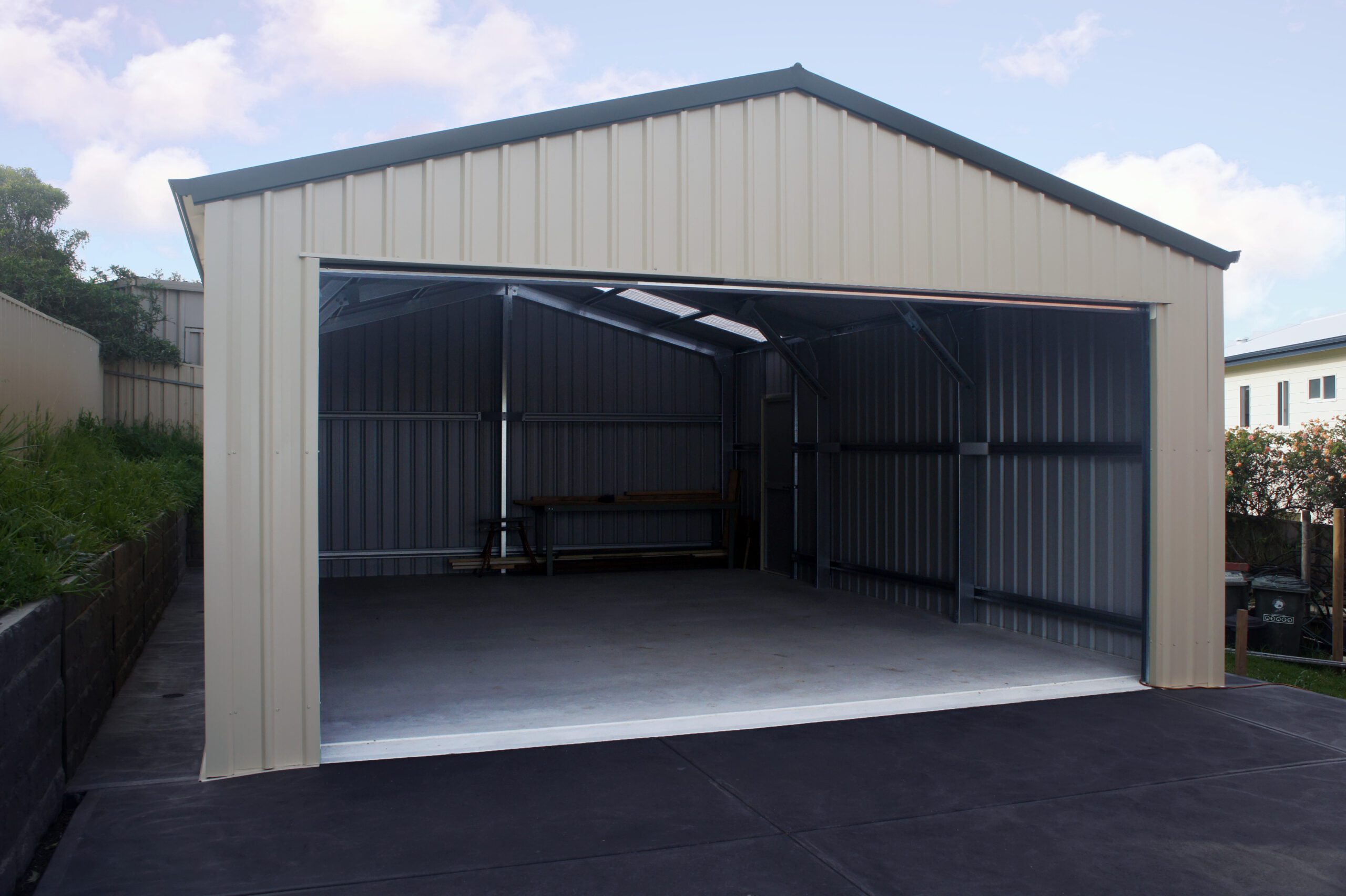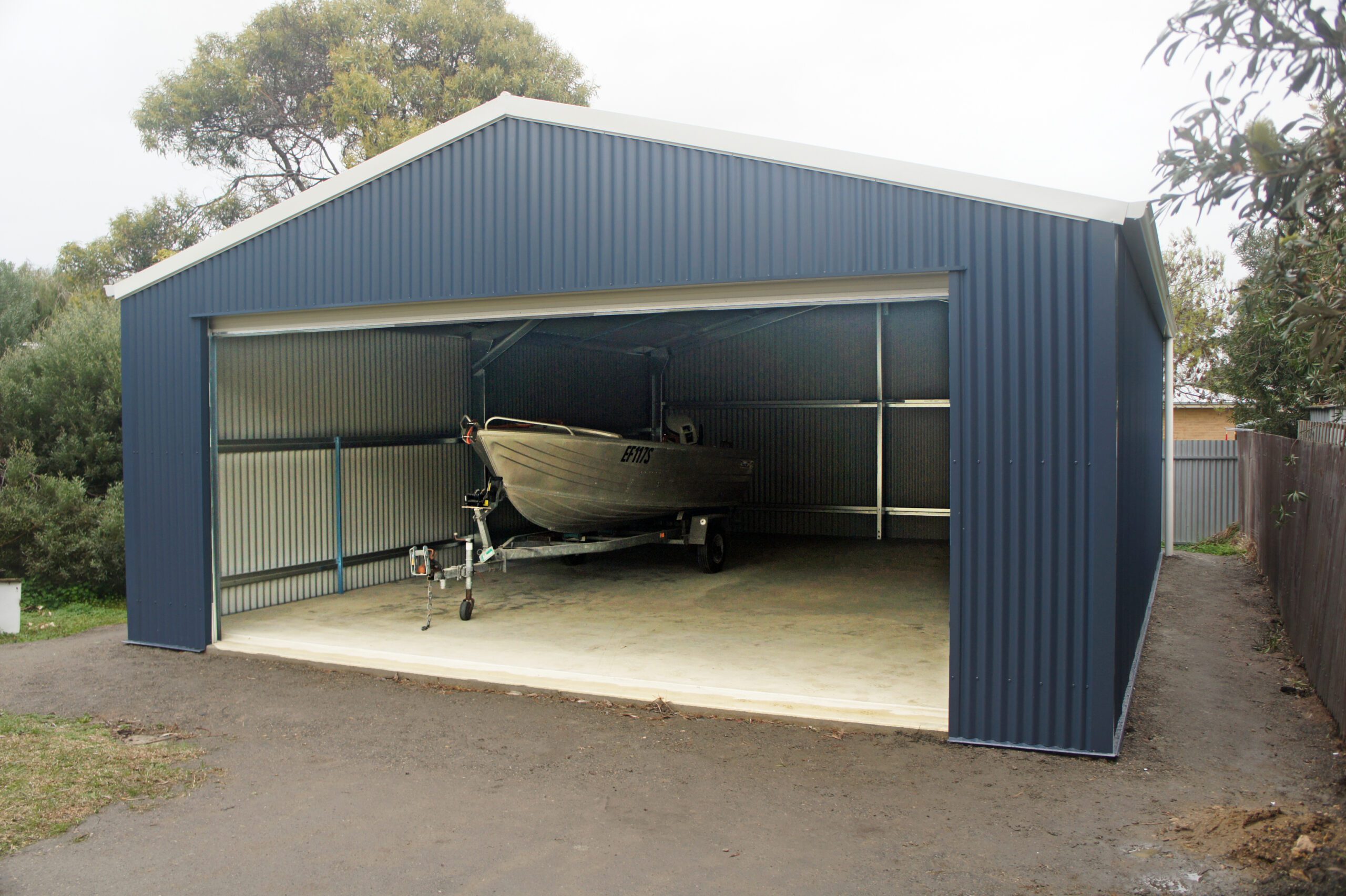 This project was a custom build, tailored to meet the unique needs of the client. The shed spans 6 metres in width, 9.28 metres in length, and stands tall with a wall height of 3.4 metres. These generous dimensions offer ample space for storing a boat, caravan or even the largest 4WD vehicle.