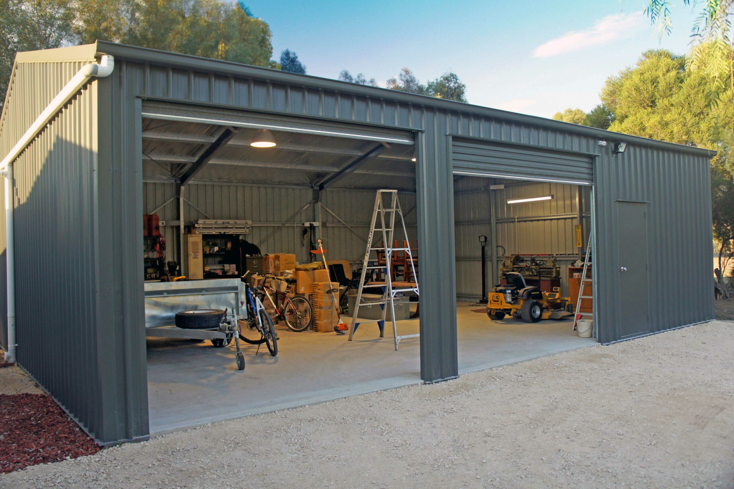 Every shed and workshop is custom designed and can include roller doors, windows and personal access doors, even a mezzanine floor.